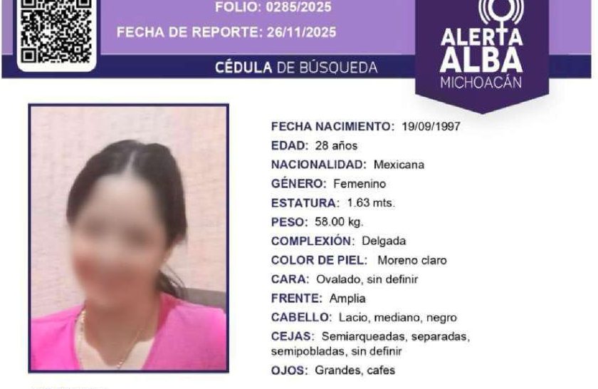 Se trata de Maritza E., de 28 años de edad, quien fue vista por última vez con vida el pasado 24 de noviembre y por ello, familiares denunciaron los hechos ante la Fiscalía Regional, instancia que comenzó labores de búsqueda.