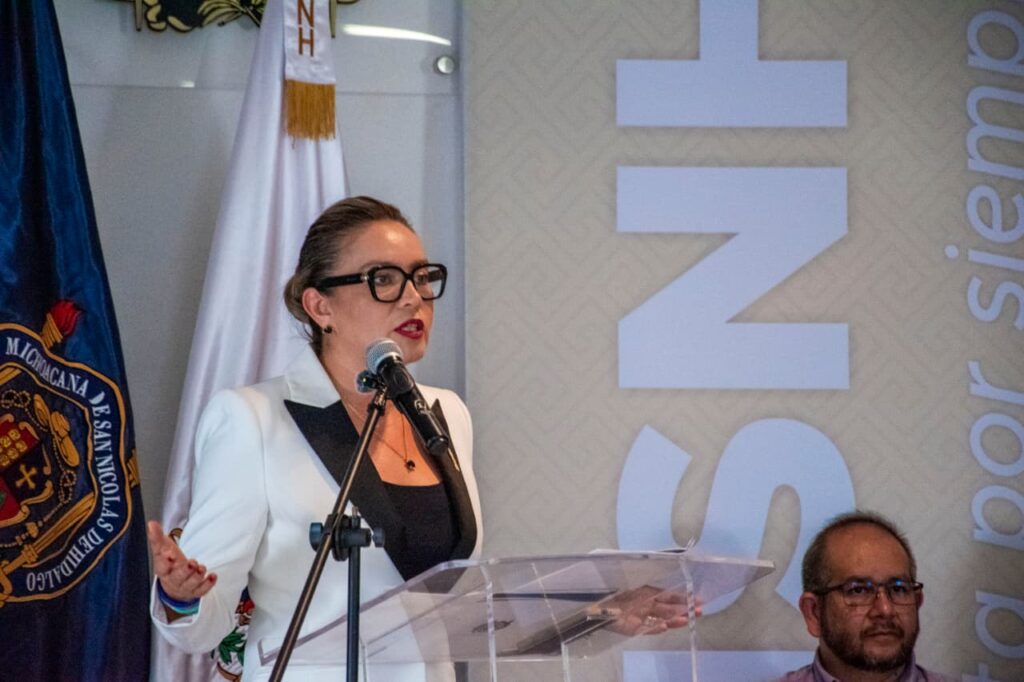 Ante las y los alumnos indicó que desde la administración central se continuará trabajando para estrechar la vinculación con entes externos que les permitan ser estudiantes mucho más fuertes, pero sobre todo, ser ciudadanos de bien, al tiempo que destacó la presencia de egresadas y egresados nicolaitas que han tenido una destacada trayectoria en diversos ámbitos.