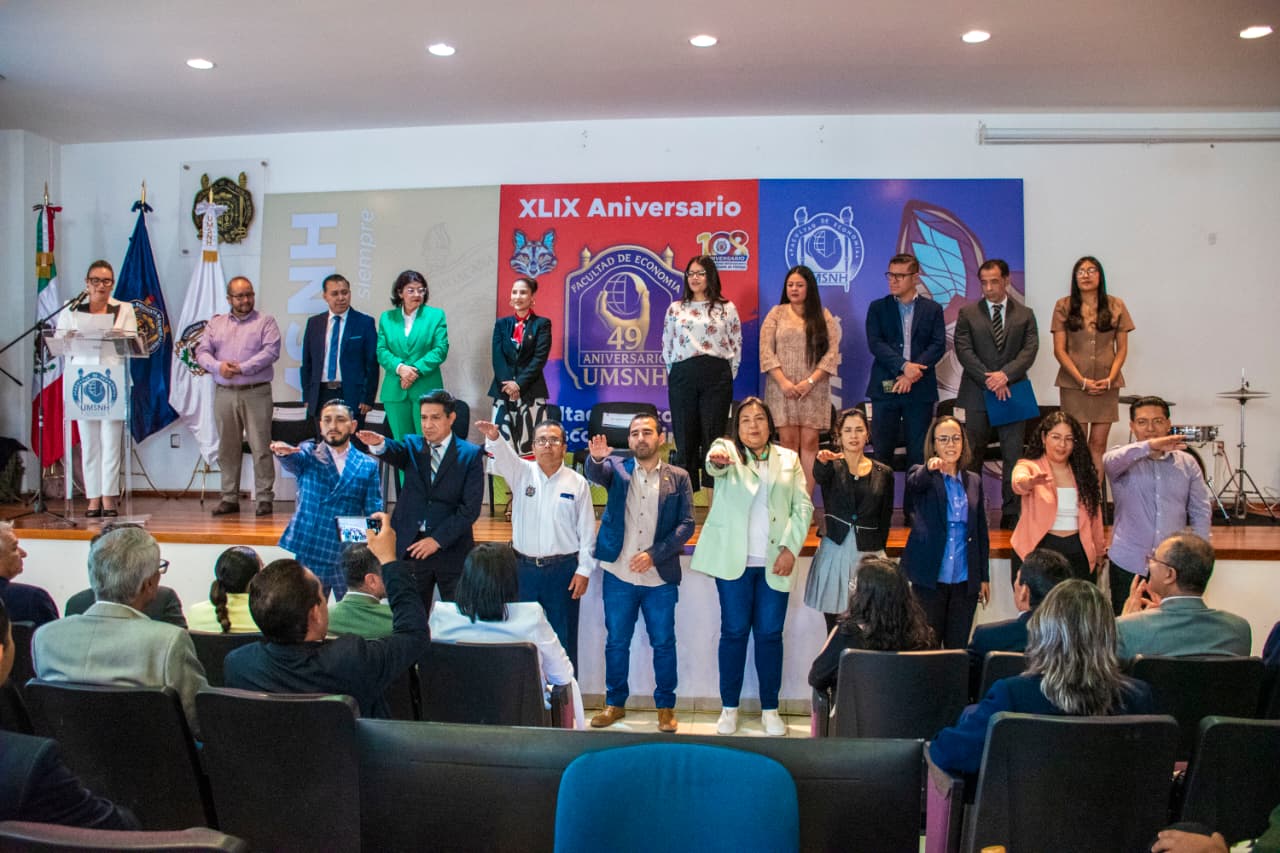 Morelia, Michoacán.- Con una transformación interna, la Facultad de Economía “Vasco de Quiroga” (FEVQ) celebró su 49 aniversario, el cual estuvo encabezado por la rectora de la Universidad Michoacana de San Nicolás de Hidalgo (UMSNH), Yarabí Ávila González, quien reconoció a la dependencia por las reformas realizadas en beneficio de la comunidad estudiantil.