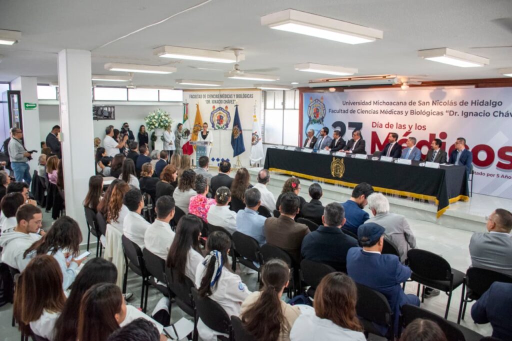 Morelia, Michoacán.- “En cada médico y en cada médica se conjuga la ciencia, la empatía, la razón, la compasión, la disciplina y la esperanza. La Medicina más que una ciencia, es una forma de humanismo en acción, es el ejercicio más noble del servicio al prójimo y una expresión viva del espíritu nicolaita”, afirmó la rectora de la Universidad Michoacana de San Nicolás de Hidalgo (UMSNH), Yarabí Ávila González, al asistir a la conmemoración del Día de la Médica y el Médico.