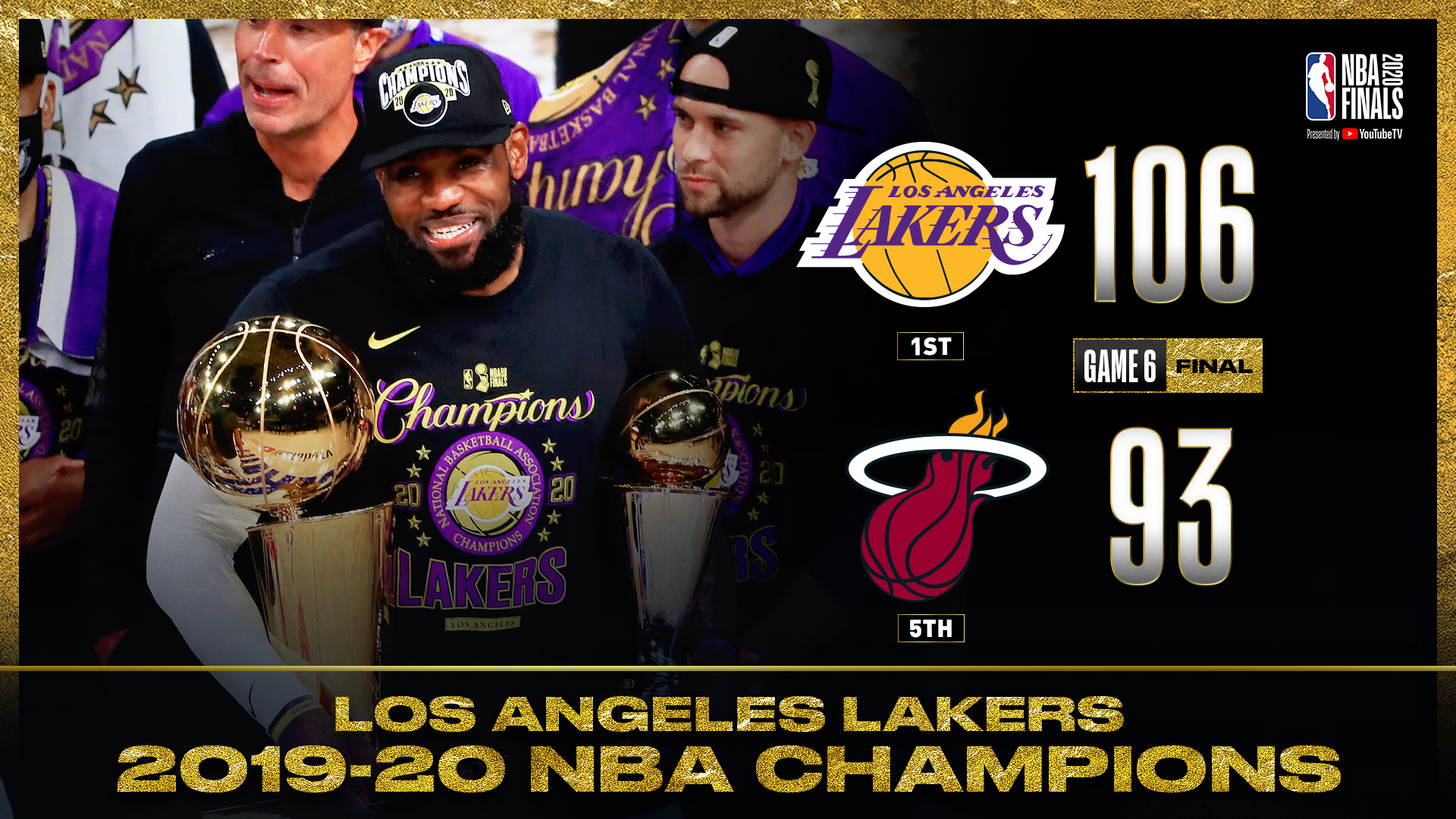 El cuadro angelino, comandado por LeBron James y Anthony Davis, consiguieron coronarse como los nuevos reyes de la NBA, derrotando 106-93 al calor de Miami, que mostró poca oposición en el sexto juego de la serie y fueron ampliamente superados los Lakers.