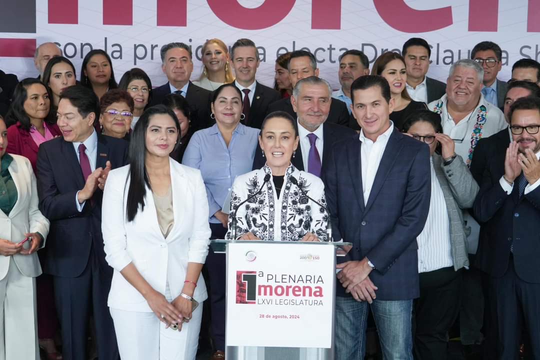 Irradiando felicidad por estar al lado de la presidenta electa Claudia Sheinbaum, Saucedo Reyes señaló que va a “contribuir para lograr el Plan C”, y remató “no podríamos pensar ser parte de la derecha, cuando nuestra agenda siempre, nuestra ideología ha sido desde la izquierda de México”.