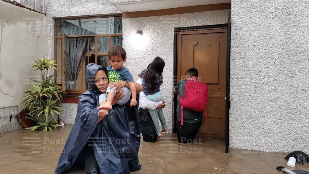 Agentes de policía, cómo trabajadores del Ayuntamiento, socorrieron a niños y adultos para poder salir de forma segura de sus domicilios, sobre todo de las zonas bajas de la ciudad, además de retirar ramas caídas en vialidades.