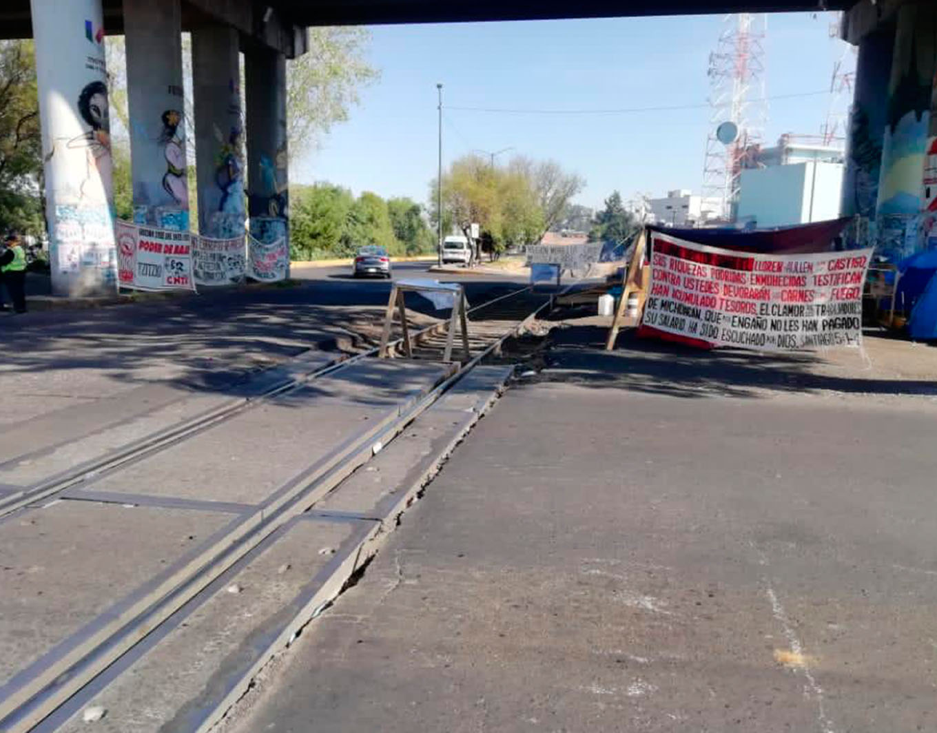 Morelia, Michoacán.- En demanda del pago de bonos atrasados, integrantes del grupo disidente Poder de Base, de la Coordinadora Nacional de Trabajadores de la Educación (CNTE), cumplieron este martes 40 días de bloqueos en las vías del tren de la comunidad de Caltzontzin, 27 en la zona de Tres Puentes de la ciudad de Morelia y 17 dúas en el municipio de Pátzcuaro.