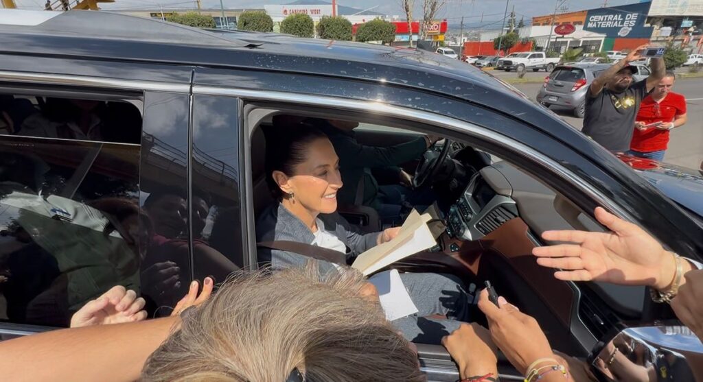 A su arribo a la capital michoacana para rendir su informe regional, previo al evento y a su salida, la presidenta Claudia Sheinbaum Pardo, se detuvo a escuchar las peticiones de los ciudadanos que esperaban a fuera del Pabellón “Don Vasco”