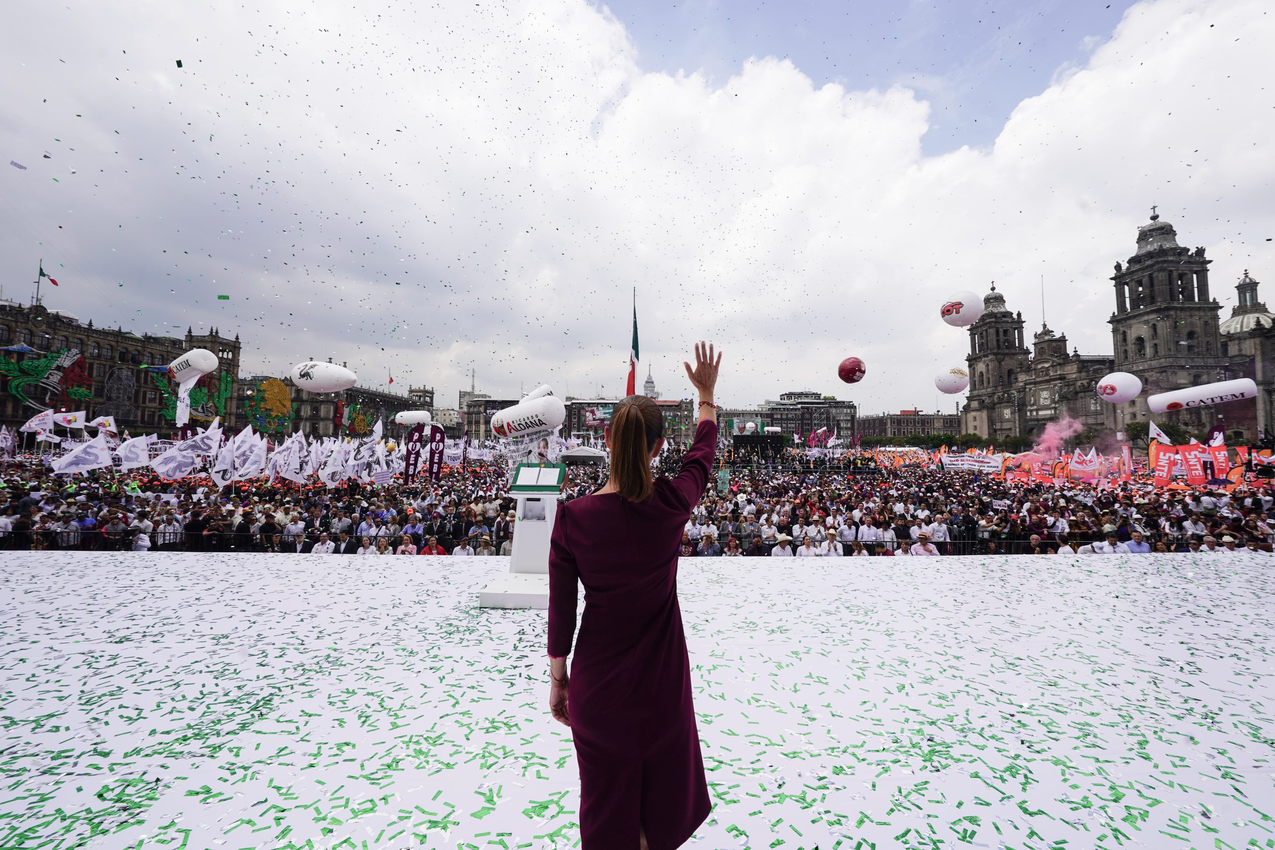 “Estoy segura, porque lo escuchamos en las plazas, a lo largo de toda la República: Vamos por el camino correcto. Aquí estamos de pie, con la fuerza de nuestra historia, con el orgullo de nuestro presente y con la esperanza de nuestro porvenir. Como lo dije, desde el primer momento, ante ustedes: ¡No les voy a fallar!”.