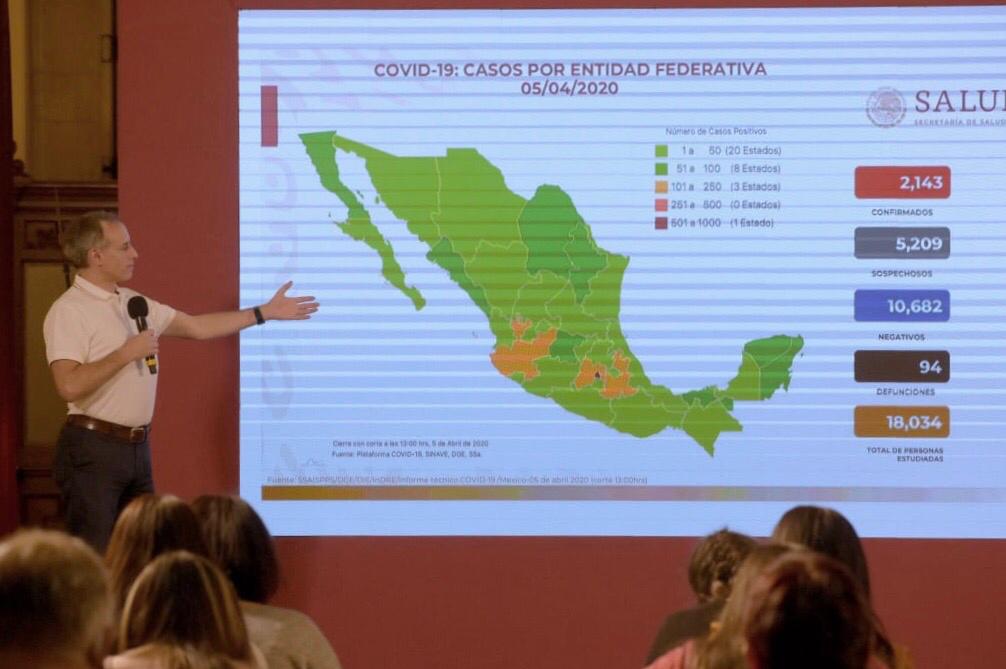 De acuerdo con el último informe oficial de autoridades de la Secretaría de Salud, hasta este domingo 5 de abril, en México, aumentó a 2 mil 143 los casos confirmados y 94 fallecimientos por el COVID- 19.