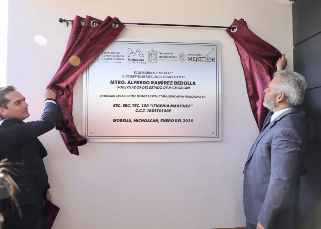Con una inversión de 40 millones de pesos, el gobernador de Michoacán, Alfredo Ramírez Bedolla, entregó la Secundaria Técnica No. 168 en Villas del Pedregal, que trabajaba en aulas de “palitos”, pero que ahora atenderá en aulas y espacios adecuados a más de 800 estudiantes y permitirá cubrir la demanda educativa en la zona, evitando que los jóvenes tengan que desplazarse por largos trayectos.