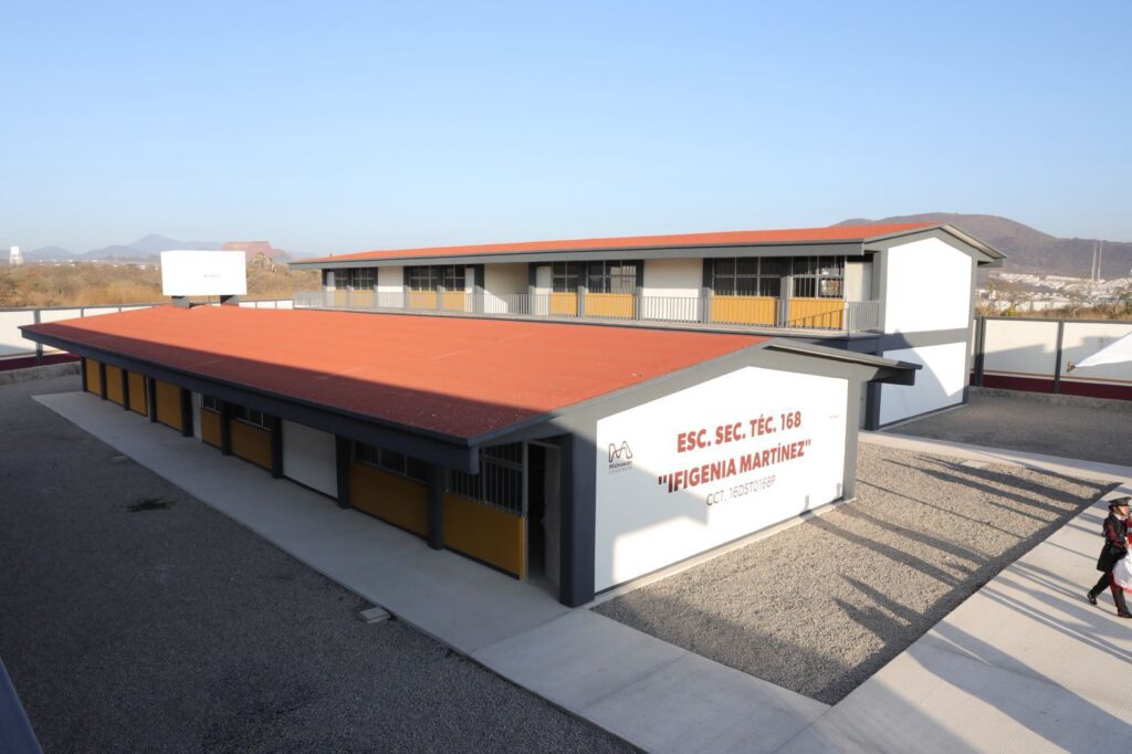 Asimismo, el mandatario estatal anunció la construcción de dos canchas de fútbol 7 con pasto sintético, que se sumarán a las áreas de talleres técnicos, cooperativa, usos múltiples y salones educativos de la nueva secundaria.