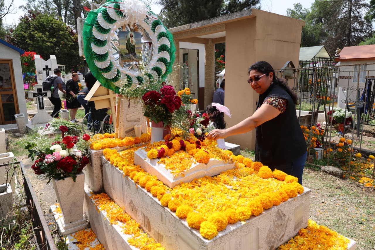 Entre música ranchera, flores cempasúchil, cubetas de agua para limpiar las lápidas y comida para disfrutar cerca del lugar de reposo del difunto, este primero de noviembre se vive un ambiente bello y familiar en el camposanto.