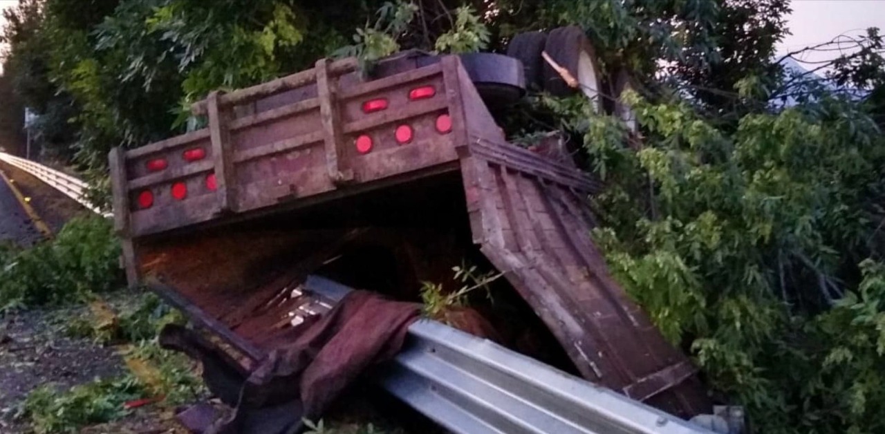 Según las fuentes, el referido vehículo transportaba un cargamento de aguacate y al momento de incidente derribó un árbol localizado a la orilla de la carpeta asfáltica.