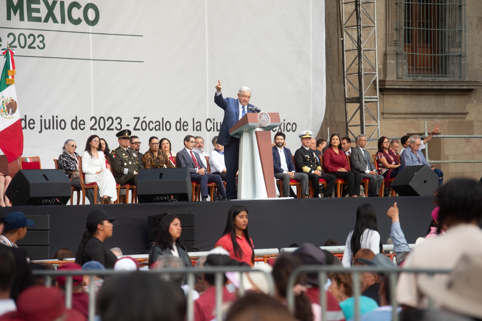 Ante miles de personas que se concentraron en el Zócalo de la Ciudad de México, el presidente Andrés Manuel López Obrador, dijo que a 5 años de la elección del 2018, hay tranquilidad social, ya que se avanza en la erradicación de la violencia y aseguró que a diferencia de lo que sucedía durante los gobiernos “neoliberales” o “neoporfiristas”, ahora no se reprime al pueblo, “ni se ordenan masacres”, “ni mucho menos existe hoy en México un narco Estado”