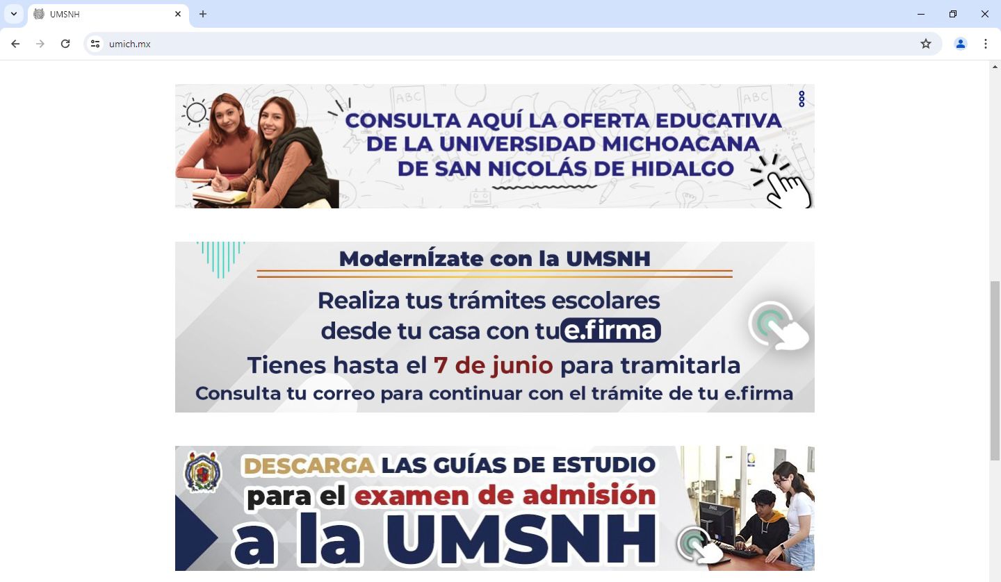 Las y los jóvenes podrán acceder a través de la página oficial www.umich.mx, en donde encontrarán las guías de estudio para las carreras de las áreas de ciencia de la salud, humanidades y derecho, económico administrativas, biológico agropecuarias y ciencias exactas e ingenierías, así como para el bachillerato, para técnico medio superior y técnico superior.