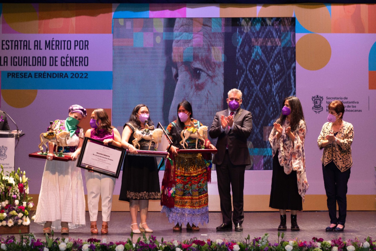 María de Lourdes Bautista Márquez, Marina Fernández Guzmán y Elena Alejandra Ibarra Rojas fueron reconocidas con el premio estatal al mérito por la igualdad de género 2022 en 3 diferentes categorías por su trabajo en defensa de los derechos de las mujeres desde las comunidades indígenas, las colectivas feministas y el arte.