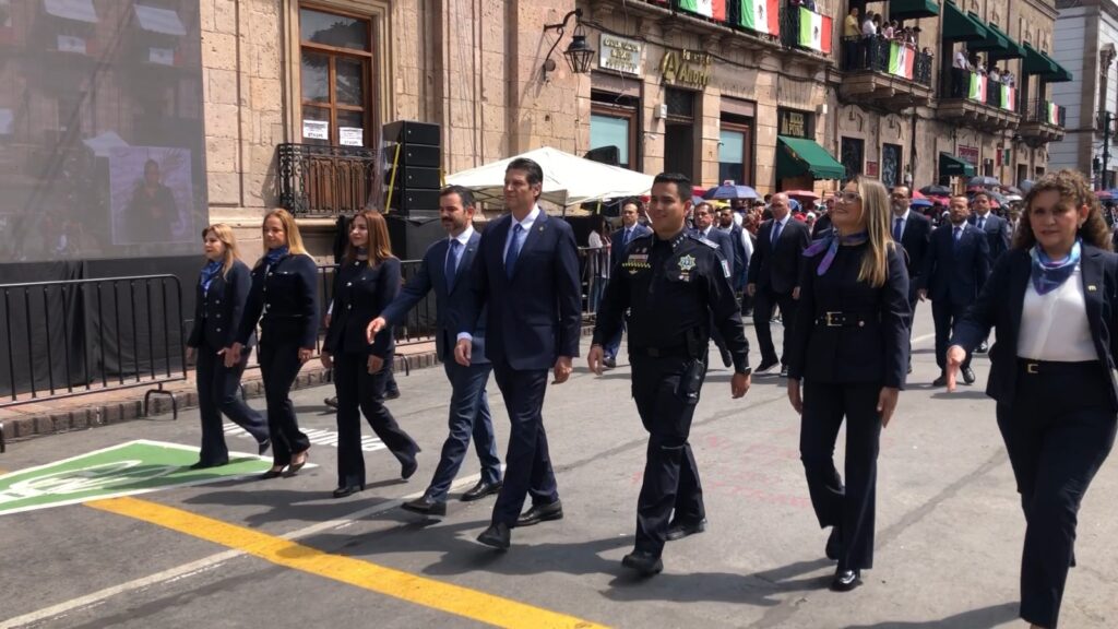 El desfile conmemorativo duró cerca de 3 horas con un sol constante, que fue visto desde el balcón principal de Palacio de Gobierno por autoridades del ejecutivo estatal, Congreso Local, judicial y del Ejército.