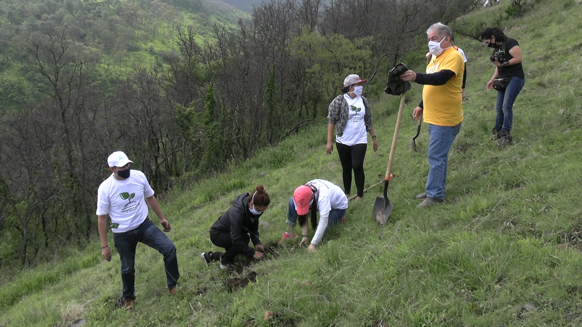 Con sana distancia y cubrebocas, los comunicadores replantaron 200 pinos en equipos de 2 o 3 personas para evitar el riesgo de contagio de COVID-19.