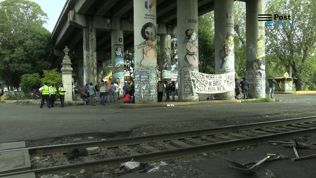 Integrantes de la Sección XVIII de la Coordinadora Nacional de Trabajadores de la Educación (CNTE) del Poder de Base, se plantaron durante cerca de 6 horas a un costado de las vías del tren en la zona de Tres Puentes de Morelia, para exigir una mesa de diálogo con algún representante de la Secretaría de Educación Estatal.