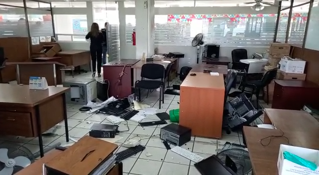 “Ingresan a la parte central del área de relaciones laborales y del área de la dirección de nóminas y gestión de personal y empiezan a romper computadoras, cristales, escritorios, hacen desorden en cuanto a documentos y vacían archiveros. Desconocemos si documentos oficiales fueron sustraídos por estas personas”.