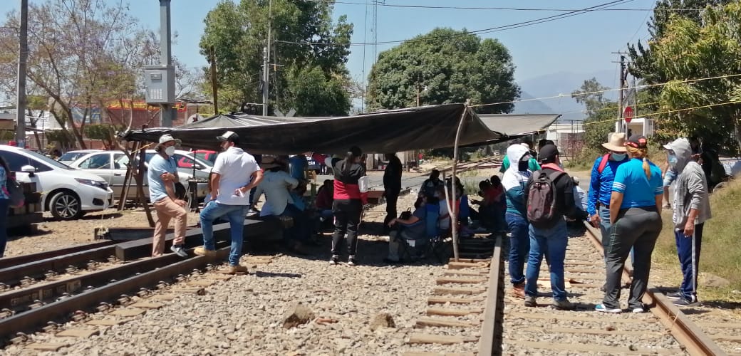 De manera sorpresiva, los trabajadores de la educación retomaron el bloqueo de las vías férreas en la comunidad de Caltzontzin alrededor del mediodía, donde se mantuvieron por cerca de 3 horas.