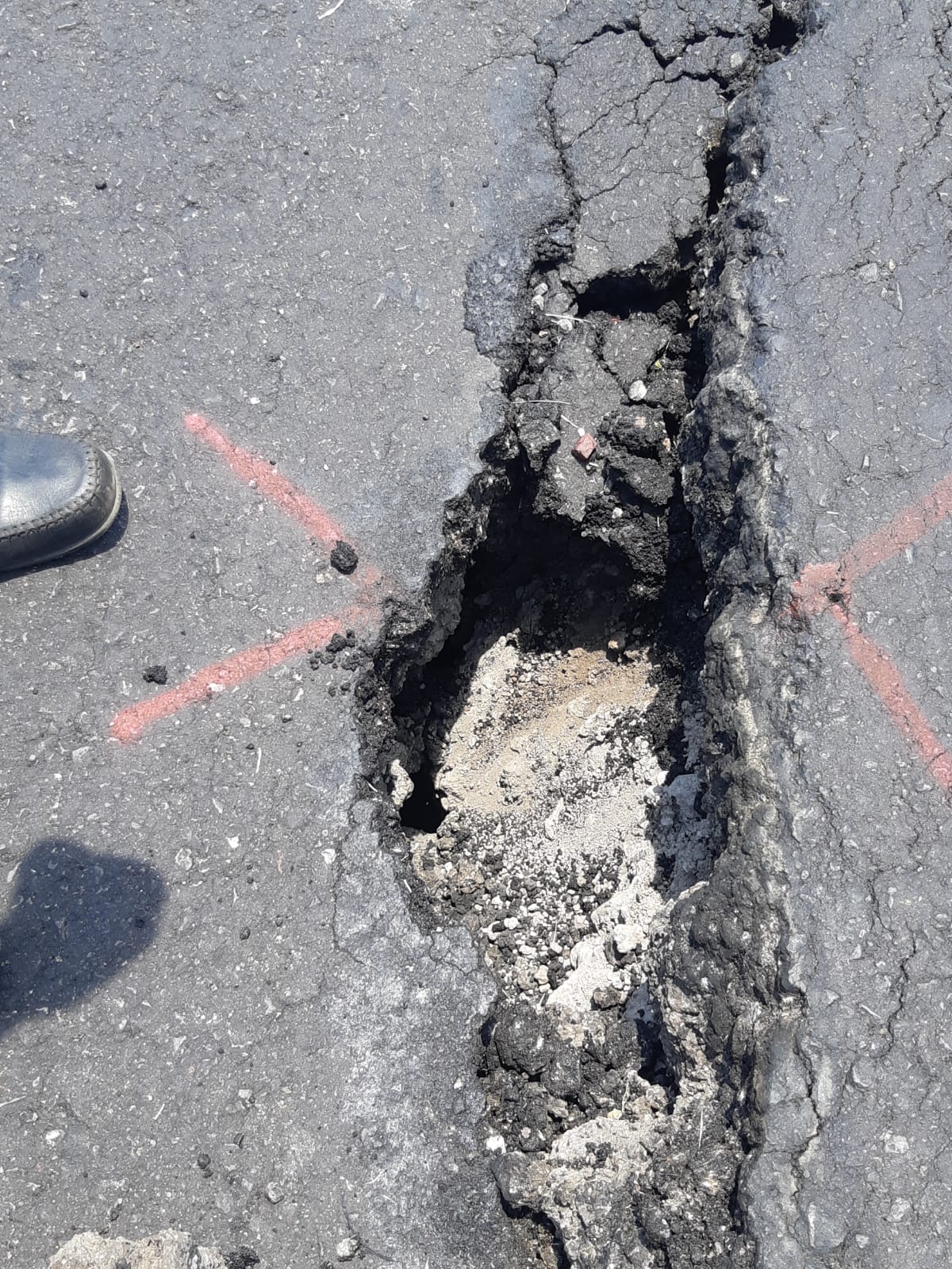 En la zona, tras la revisión se detectó una grieta prominente en una longitud aproximada de 150 metros, profundidad incalculable, así como el hundimiento y desprendimiento de la barda de contención y deslizamiento del terraplenado, afectando los dos carriles, lo cual representa un riesgo inminente para el paso de todo tipo de vehículos.