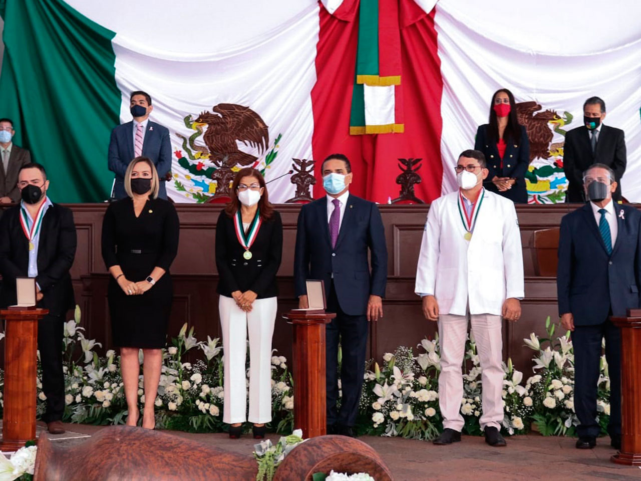 En reconocimiento a la labor que realiza el personal del sector salud para atender a los enfermos de COVID-19, pese a poner en riesgo su vida, el Congreso de Michoacán entregó la presea Constitución de 1814 a los médicos Francisco Lunar Vargas y María Estela Núñez Baltazar, así como al técnico radiólogo Héctor Daniel Espino Bautista.