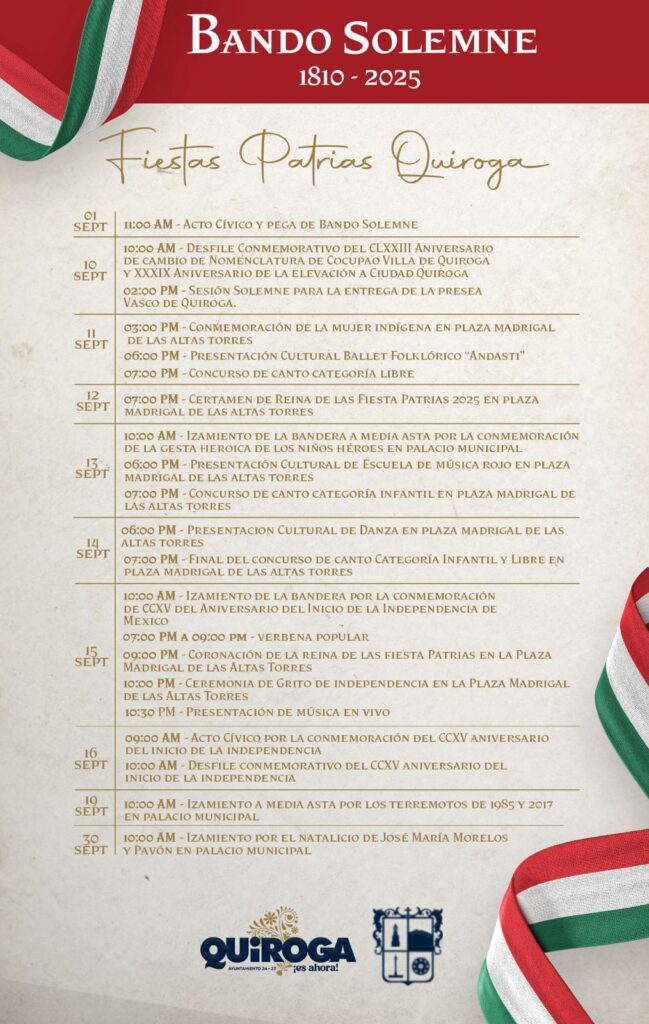Con este acto se da inicio formal a las celebraciones del mes patrio y del aniversario de la fundación de Quiroga, fechas de gran relevancia que fortalecen la identidad y el orgullo de las y los quiroguenses.