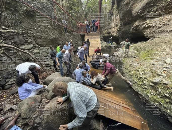 La estructura se desplomó cuando la atravesaban el alcalde su esposa y cerca de una decena de personas que formaban parte de su comitiva entre ellos un fotógrafo, tras lo cual cayeron de metros de altura.