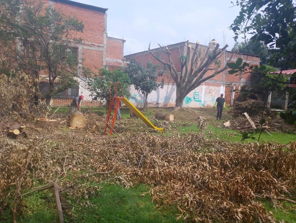 Quiroga, Michoacán.-. La presidenta municipal de Quiroga, Alma Mireya González Sánchez, refrendó su compromiso con el cuidado de los espacios educativos y el bienestar de la niñez, al coordinar, a través de la Dirección de Parques y Jardines, labores de mantenimiento en las áreas verdes del Jardín de Niños “Justo Sierra” durante el receso escolar.