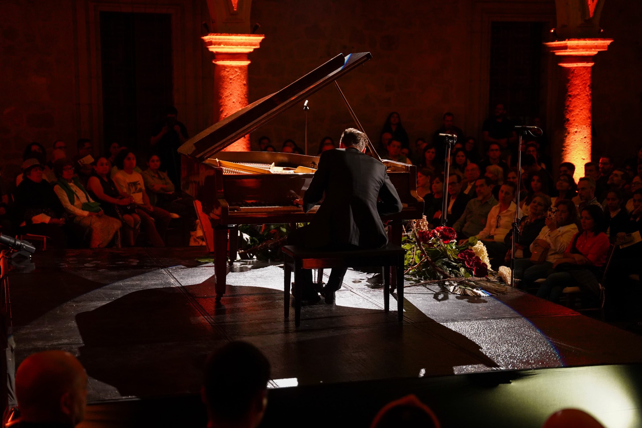 Morelia Mich.-¡Qué noche tan mágica se vivió! en el FMM 2024 regaló un evento musical inolvidable con la presentación del virtuoso pianista lituano, Rokas Valuntonis. Su interpretación llena de pasión y virtuosismo dejó sin aliento y recordó a los asistentes por qué es considerado uno de los pianistas más talentosos de su generación. El pianista lituano, deleitó al público moreliano en el majestuoso Palacio Municipal, este emblemático edificio sirvió como marco perfecto para una velada llena de música y elegancia.