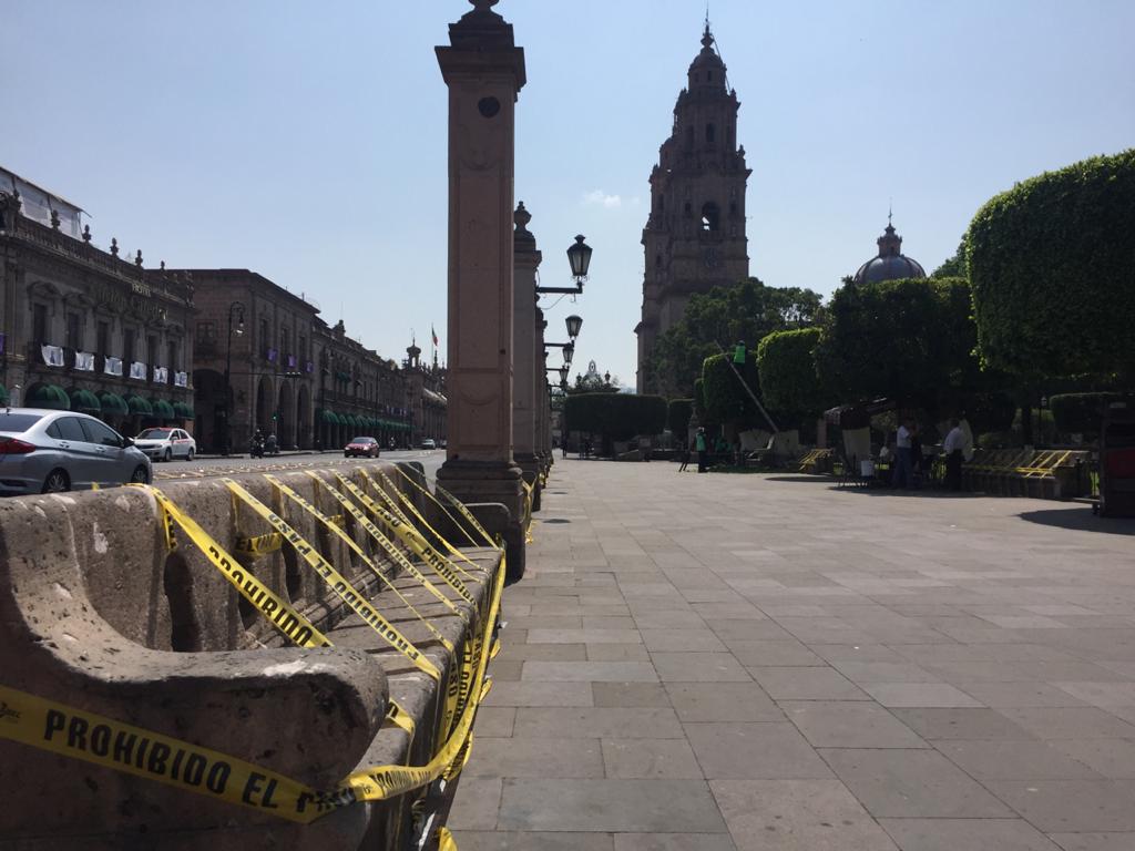 Como parte de las medidas preventivas ante la contingencia generada por la enfermedad del COVID-19, el Gobierno de Morelia implementó un operativo para restringir el uso de bancas en plazas públicas del primer cuadro de la ciudad.