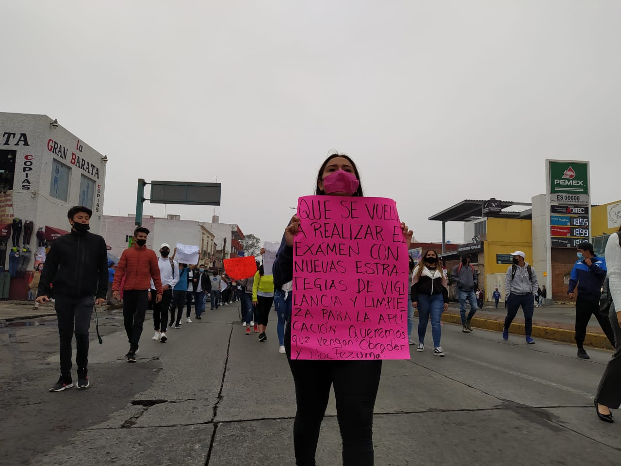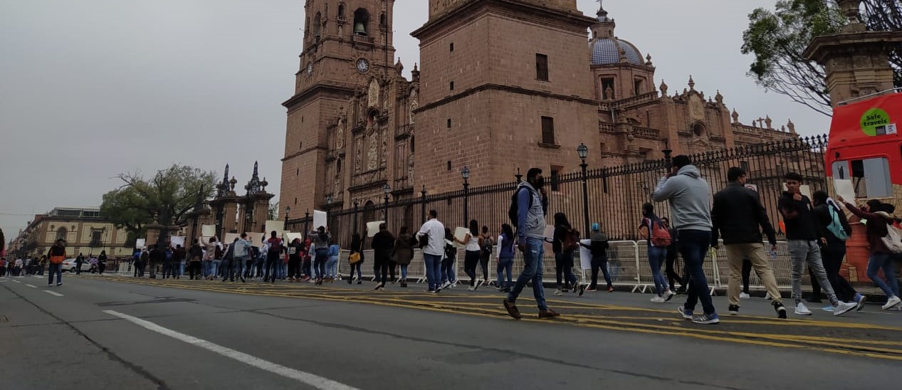 Por segundo día consecutivo, aspirantes y rechazados de las escuelas normales de Michoacán se movilizaron en Morelia, este martes desde el monumento a Lázaro Cárdenas hasta Palacio de Gobierno con el fin de exigir la repetición del examen de nuevo ingreso, ante los presuntos actos de corrupción que denuncian se cometieron en el proceso de selección.