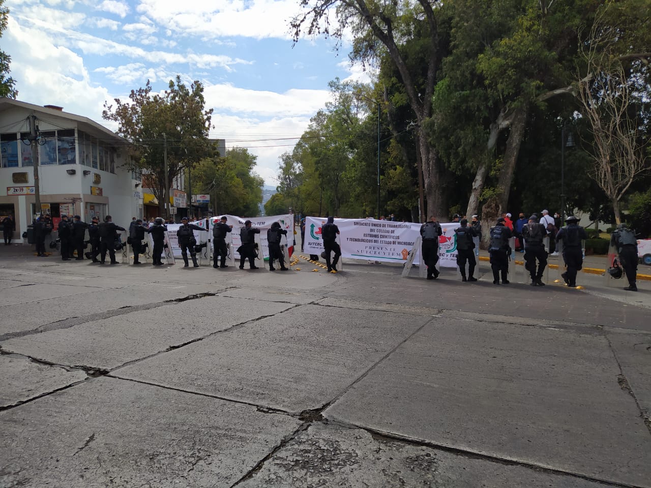 Integrantes de Sindicato Único de Trabajadores del Colegio de Estudios Científicos y Tecnológicos del Estado de Michoacán (SUTCECyTEM) bloquearon la avenida Ventura Puente, y realizaron paro laboral en 93 planteles del CECyTEM debido a la falta de pago del bono “Rumbo a la excelencia”, el cual asciende a 10 mdp para 1 mil 500 empleados , expuso el secretario general Silviano Rentería Patiño.