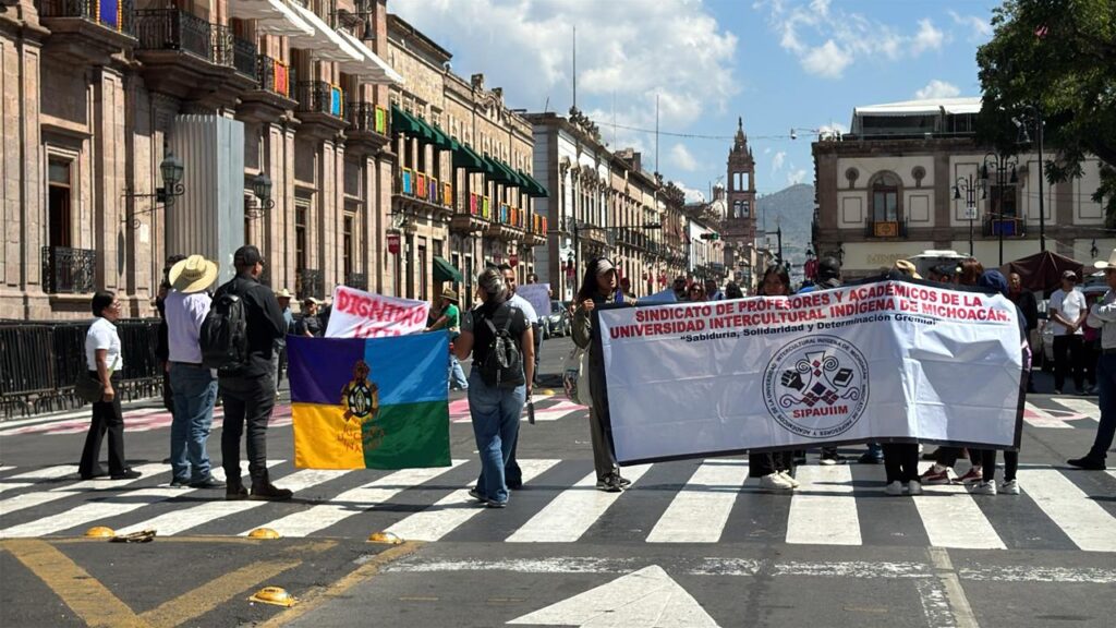 Integrantes del Sindicato de Profesores, Académicos de la Universidad Intercultural Indígena de Michoacán (UIIM) bloquearon la avenida Madero para exigir al Gobierno estatal aumento al presupuesto anual de 56 a 100 millones de pesos para garantizar el funcionamiento de la institución educativa.