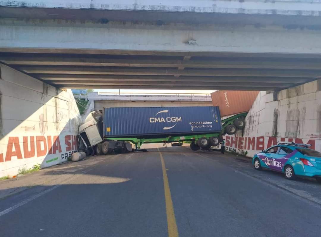 La emergencia fue reportada en las inmediaciones del kilómetro 265 de la autopista de occidente, donde el camión de carga se precipitó hacia la carretera libre Coeneo – Huaniqueo y acabó incrustado en la parte baja de un puente.