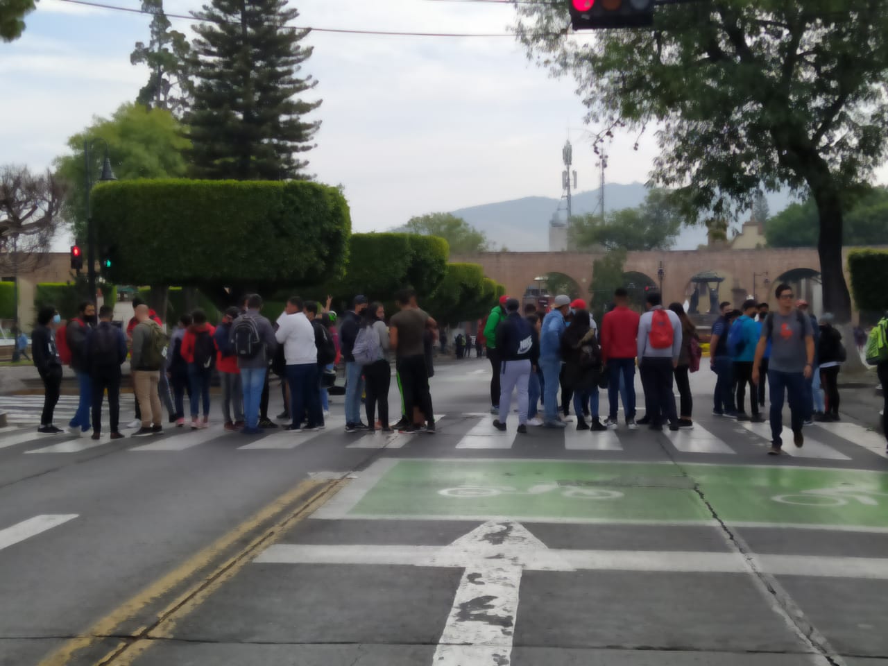 Estudiantes de la Organización de Normales Oficiales del Estado de Michoacán (ONOEM) bloquearon la circulación vial a la altura de las Tarascas en Morelia, para exigir el pago de las becas de apoyo a prácticas y servicio adeudados por el gobierno del estado.