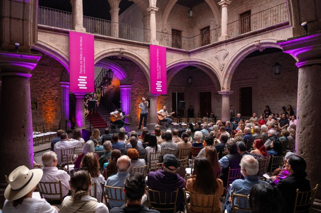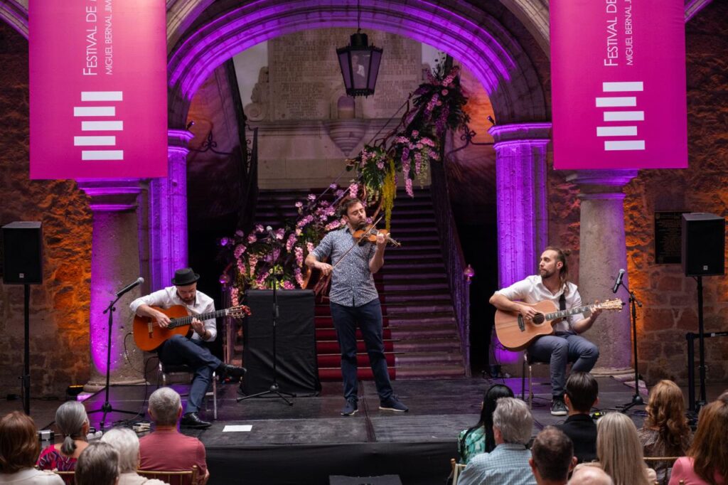 Morelia, Mich.- En el marco del Festival de Música de Morelia Miguel Bernal Jiménez, el mediodía del domingo se llenó de ritmo, pasión y virtuosismo con la presentación del Trío Cobario en el Palacio Municipal de Morelia. A las 13h, los músicos cautivaron al público con un concierto que recorrió diversos paisajes sonoros del mundo, tejiendo una conexión única entre el tango, la música latinoamericana, el jazz y los sonidos gitanos de Europa del Este.