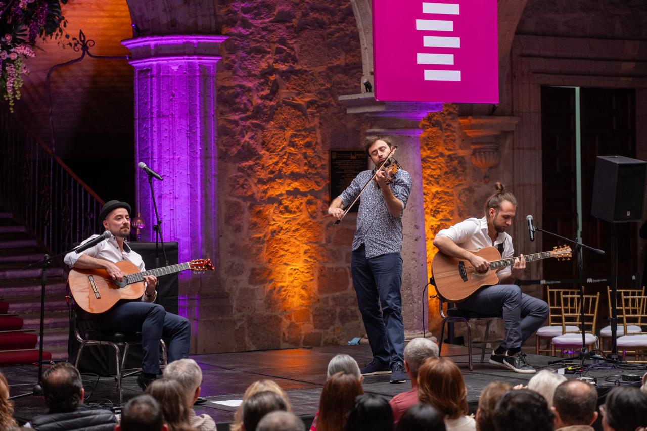 Morelia, Mich.- En el marco del Festival de Música de Morelia Miguel Bernal Jiménez, el mediodía del domingo se llenó de ritmo, pasión y virtuosismo con la presentación del Trío Cobario en el Palacio Municipal de Morelia. A las 13h, los músicos cautivaron al público con un concierto que recorrió diversos paisajes sonoros del mundo, tejiendo una conexión única entre el tango, la música latinoamericana, el jazz y los sonidos gitanos de Europa del Este.