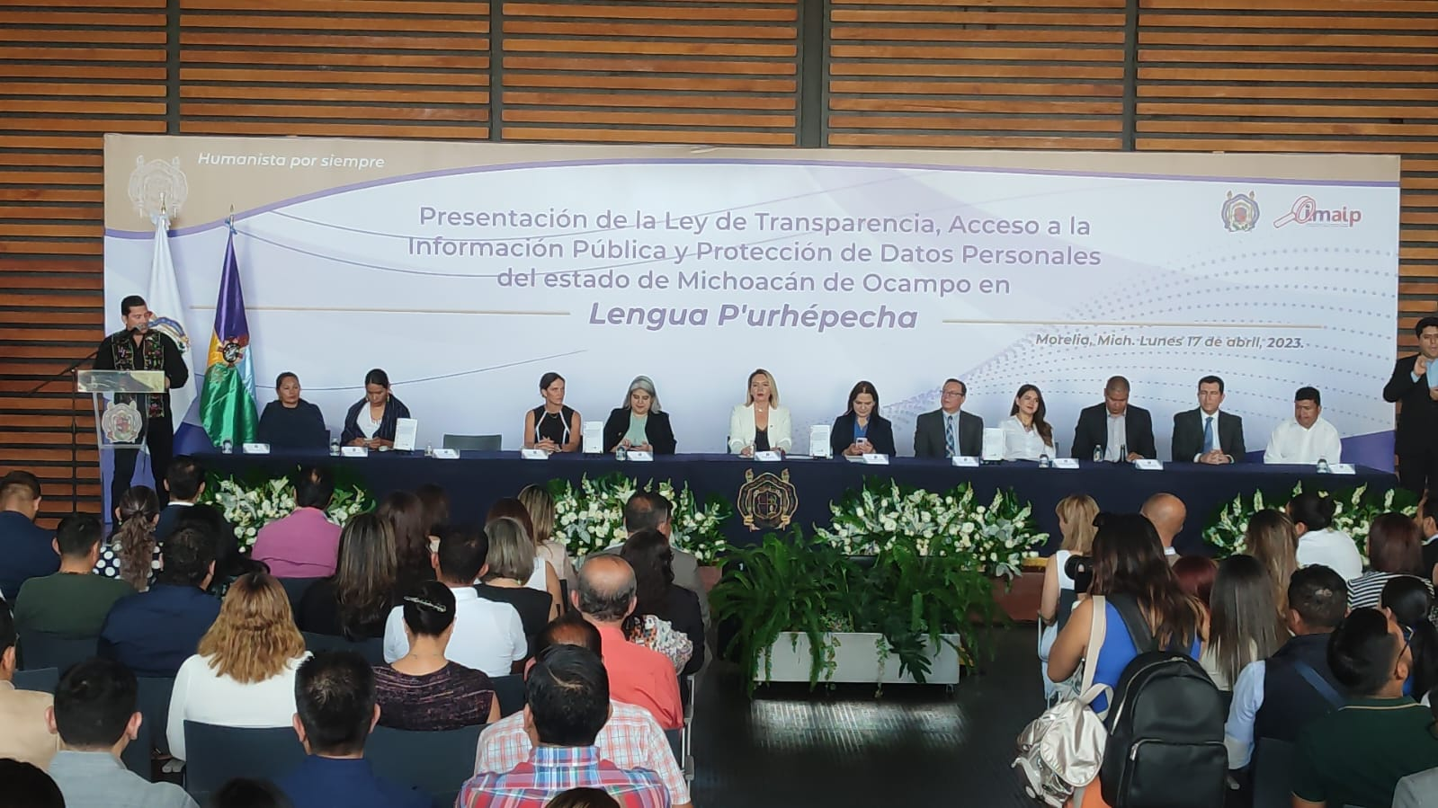 “El día de hoy el Instituto Michoacano de Transparencia, Acceso a la Información Pública y Protección a Datos Personales, en coordinación con la Universidad Michoacana de San Nicolas de Hidalgo tenemos el honor de presentar, la primera Ley de Transparencia y Accedo a la Información Pública y Protección de Datos Personales, traducida a la lengua purépecha”