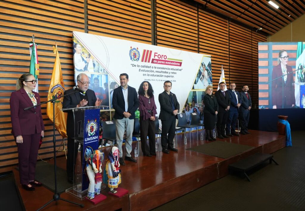 Morelia, Michoacán.- La Universidad Michoacana de San Nicolás de Hidalgo (UMSNH) vive una consolidación histórica en su calidad educativa y refrenda el firme compromiso con la evaluación y la mejora continua, lo anterior quedó de manifiesto durante la inauguración del III Foro de Pares Evaluadores “De la calidad a la excelencia educativa”, que estuvo presidido por la rectora Yarabí Ávila González.