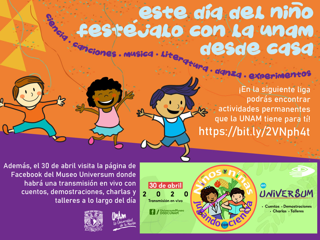 Morelia, Michoacán.- El Día del Niño es una celebración que no debe pasar desapercibida, aún en tiempos de contingencia sanitaria, por ello hemos seleccionado actividades que nos ofrece la UNAM a través de sus diversas dependencias, las cuales pueden realizar los pequeños desde su casa.