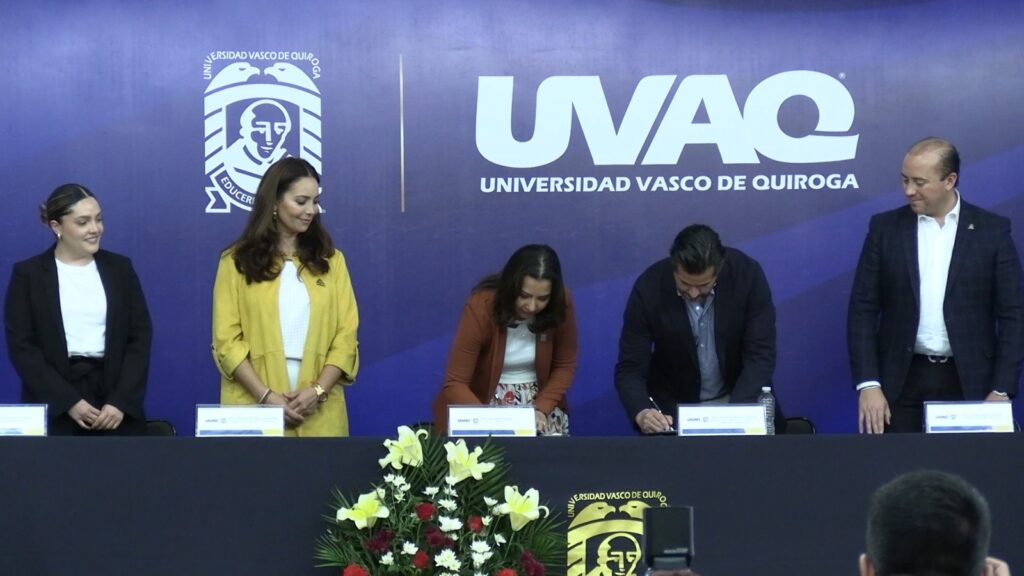 La Universidad Vasco de Quiroga firmó convenio con UNIVERSIA Santander, a fin de que los cerca de 17 mil egresados que tiene la institución cada año y que son mayores de 18 años de edad, puedan acceder a la plataforma digital gratuita de la institución bancaria que oferta una bolsa laboral y la posibilidad de realizar su servicio profesional en alguna de las 37 mil empresas vinculadas.