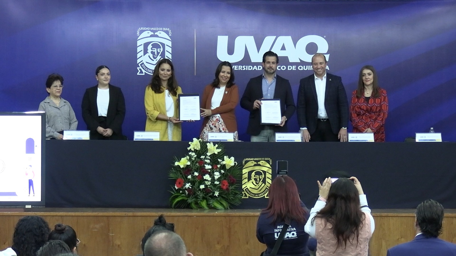 La Universidad Vasco de Quiroga firmó convenio con UNIVERSIA Santander, a fin de que los cerca de 17 mil egresados que tiene la institución cada año y que son mayores de 18 años de edad, puedan acceder a la plataforma digital gratuita de la institución bancaria que oferta una bolsa laboral y la posibilidad de realizar su servicio profesional en alguna de las 37 mil empresas vinculadas.