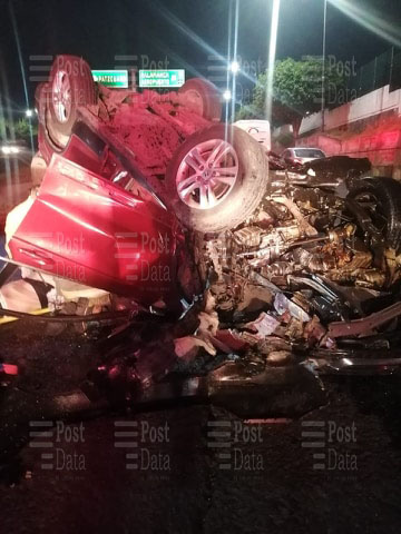 Morelia, Mich.-  Un vehículo volcó y quedó destrozado tras chocar contra un objeto fijo, esto sobre el Periférico Paseo de la República, Sector Revolución, al norte de Morelia; un hombre resultó herido.