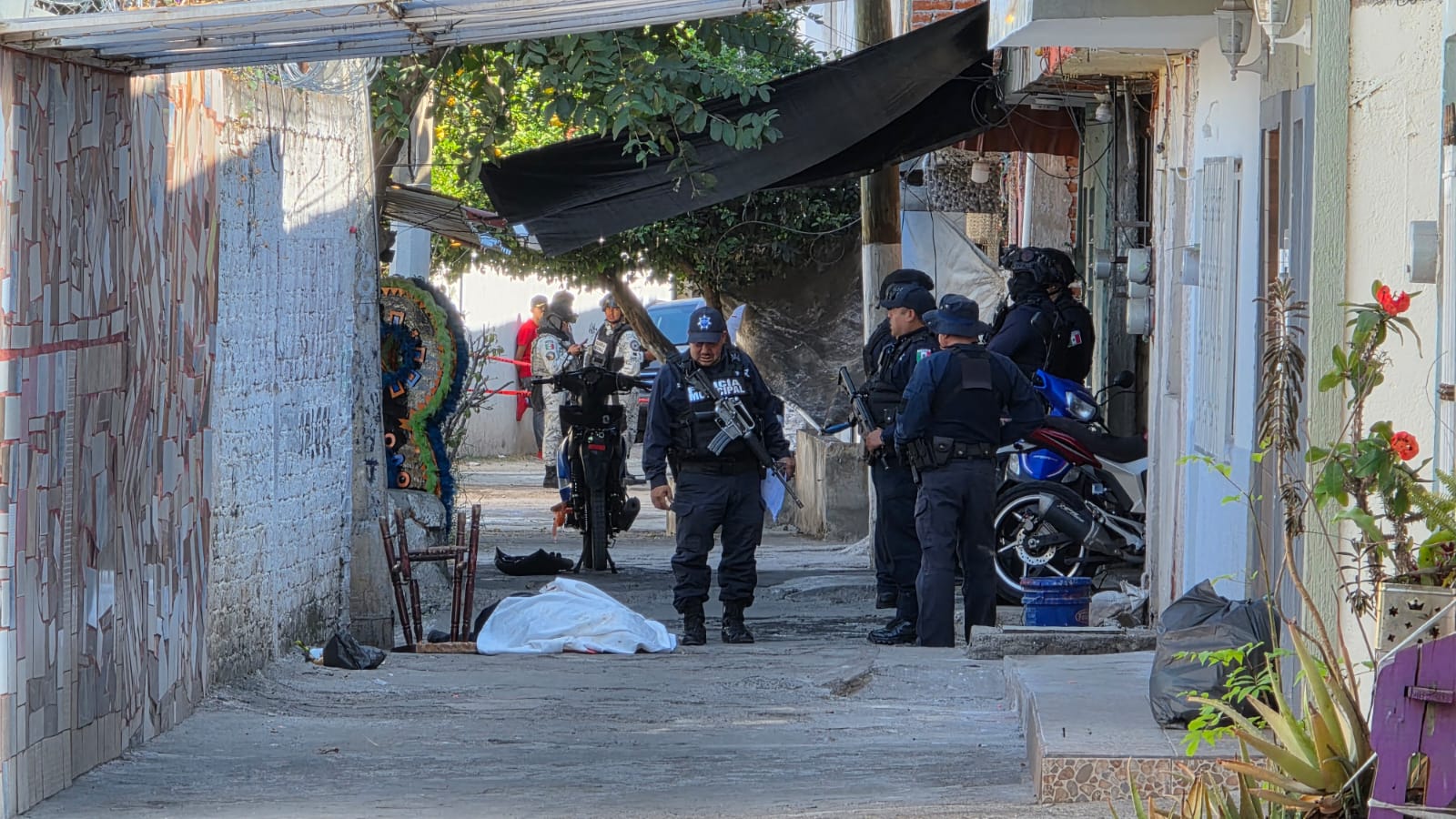 Elementos de la Policía Municipal, Guardia Nacional y Guardia Civil se trasladaron al lugar confirmando que se trató de una agresión armada, por lo que acordonaron la zona y solicitaron el apoyo de una ambulancia.