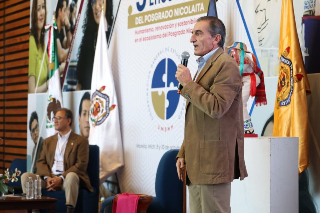 Como parte de las actividades del Tercer Encuentro del Posgrado Nicolaita, el doctor Masera brindó la ponencia magistral “Agenda para la transición energética, justa y sustentable en México. Experiencias y retos desde el Pronaces de energía y cambio climático”.